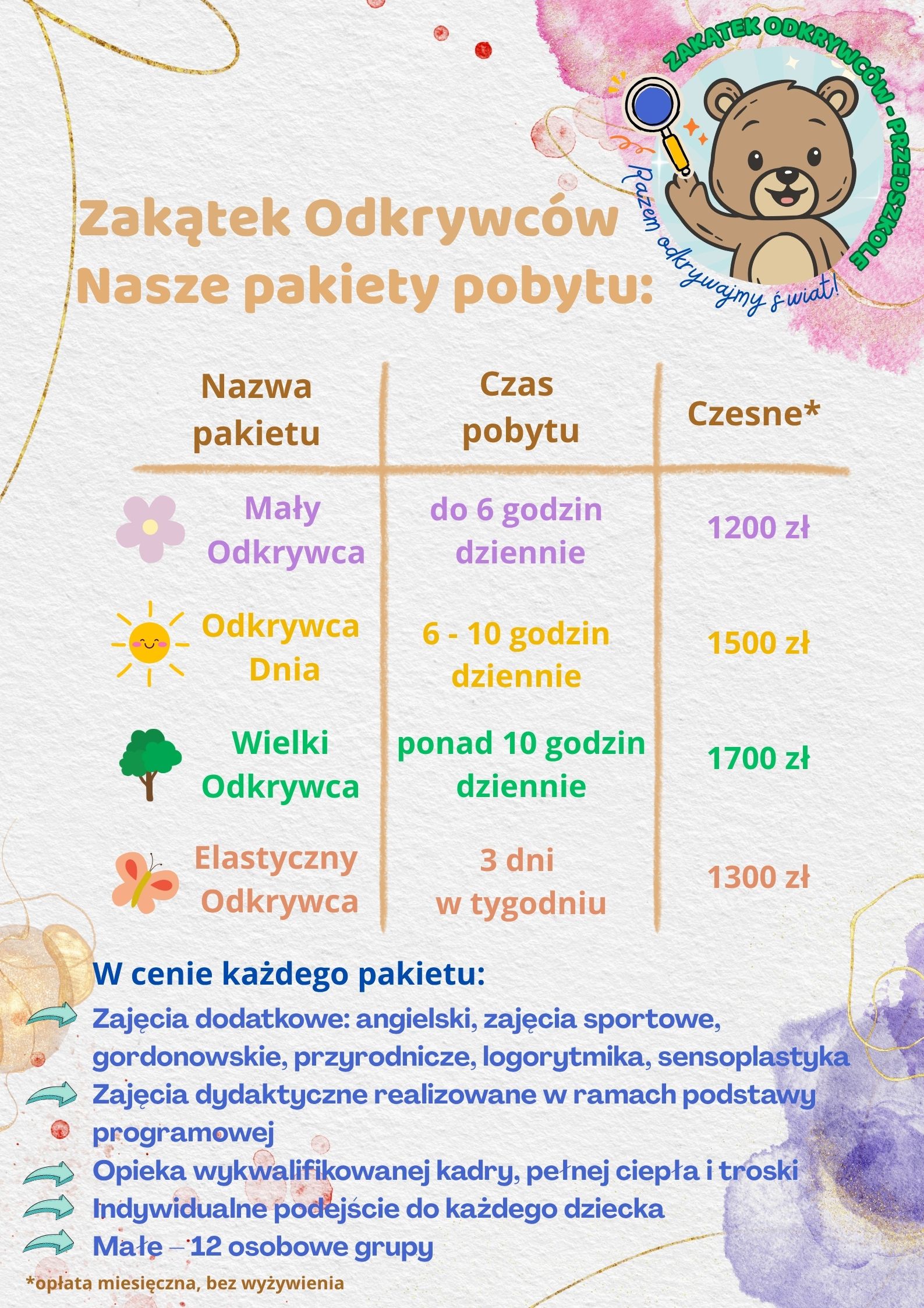Gratulacje! Twoje dziecko staje się częścią naszej rodziny Zakątka Odkrywców.